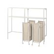 Un mueble de almacenaje ENHET de ikea con tres estantes y dos bolsas de lavandería beige con ruedas. Diseño moderno, acabado en blanco.