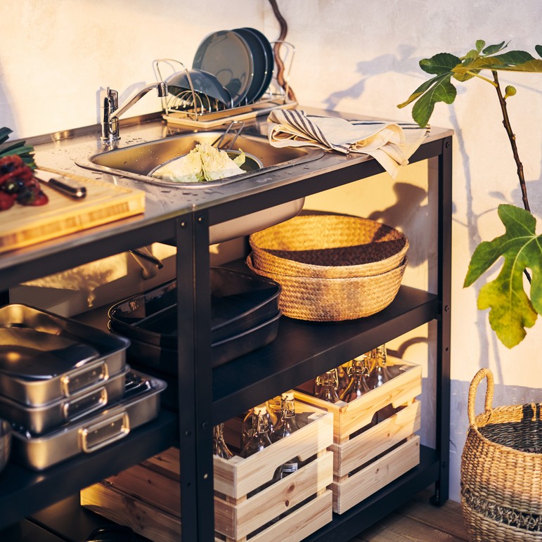 Perfect to have close to the grill so you can prepare food and place dirty bowls, plates and knives in the sink bowl to keep the work surface free. Just as you do in your indoor kitchen.