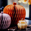 What would autumn be without pumpkins in the colors of autumn? These are in recycled paper and are just as decorative on your set table as on a shelf. Easy to fold up to save for next year.
