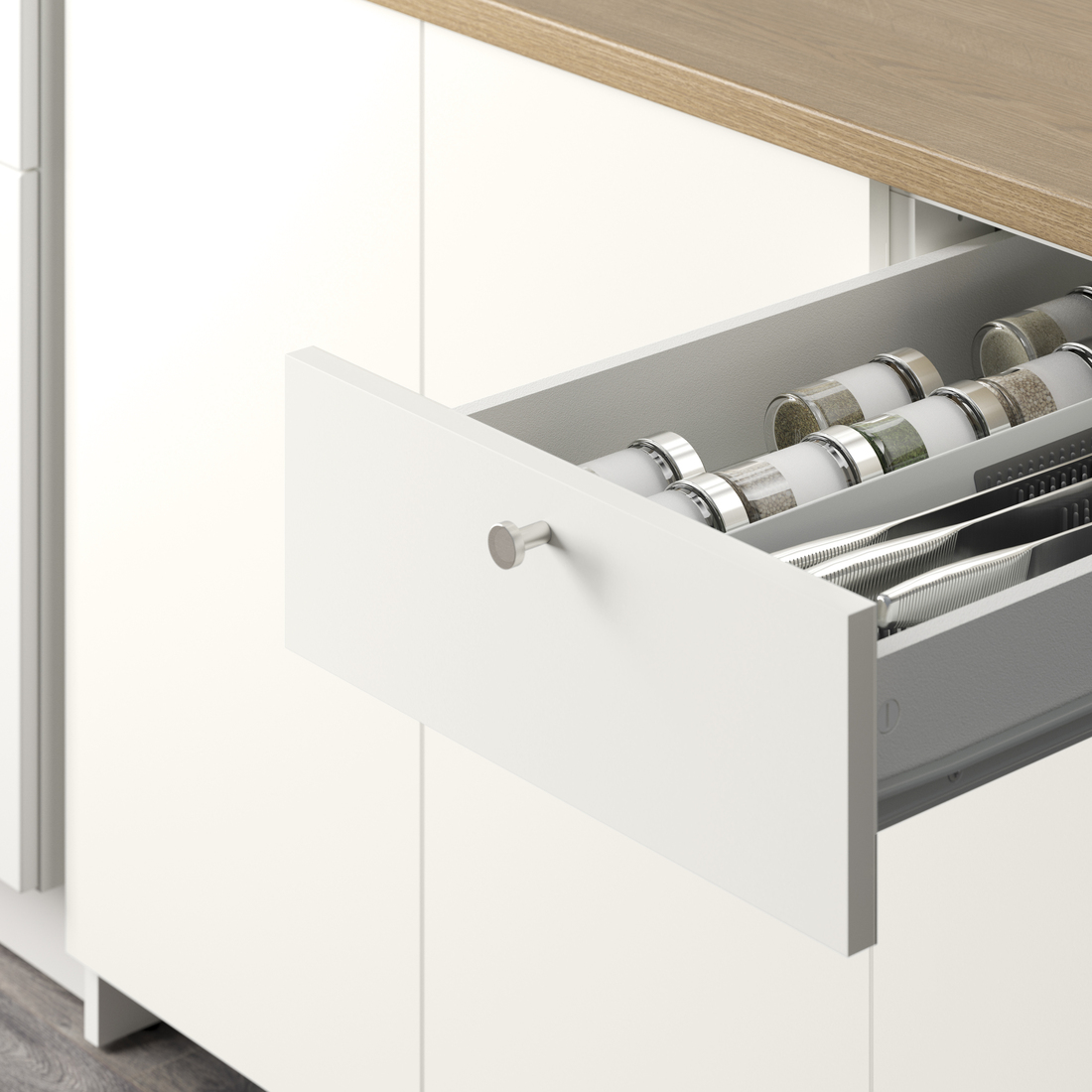 You can store everything from cutlery and tableware to pans since this combination has both drawers and cabinets.