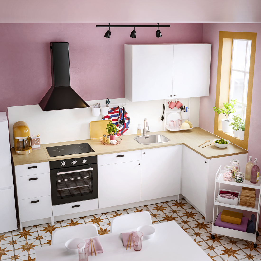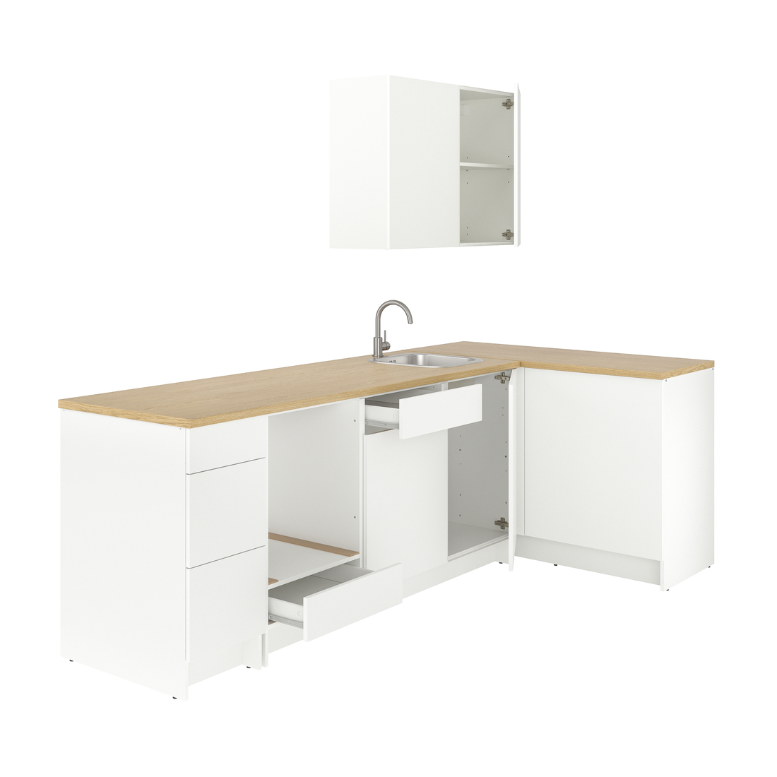 KNOXHULT corner kitchen with GLYPEN water tap, white, 283x122x220 cm