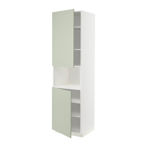 METOD high cab f micro w 2 doors / shelves, white / Stensund light green