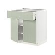 Mueble de cocina METOD blanco con cajón y estantes beige.