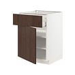 Mueble de cocina METOD blanco con cajones y puerta sinarp marrón oscuro, frente abierto.