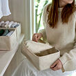 These small linen-like fabric boxes are both decorative and practical, helping you organise socks, lingerie, and accessories. Use one or several in each drawer, depending on your needs.