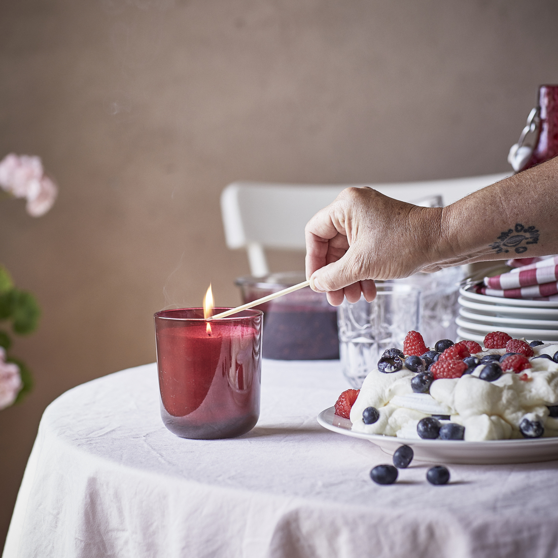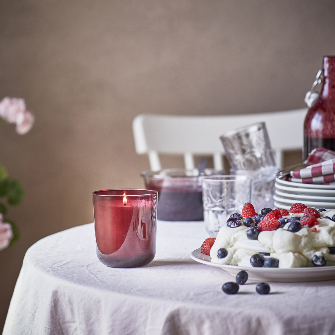What’s the scent of home for you? STÖRTSKÖN scented candle offers a joyful feel of berries, leafy greens and violets. Welcome home to a light and happy atmosphere inspired by sunny summer days