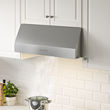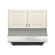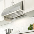 You can choose the look by mounting this range hood either inside a wall cabinet or wall-mounted with a visible chimney.