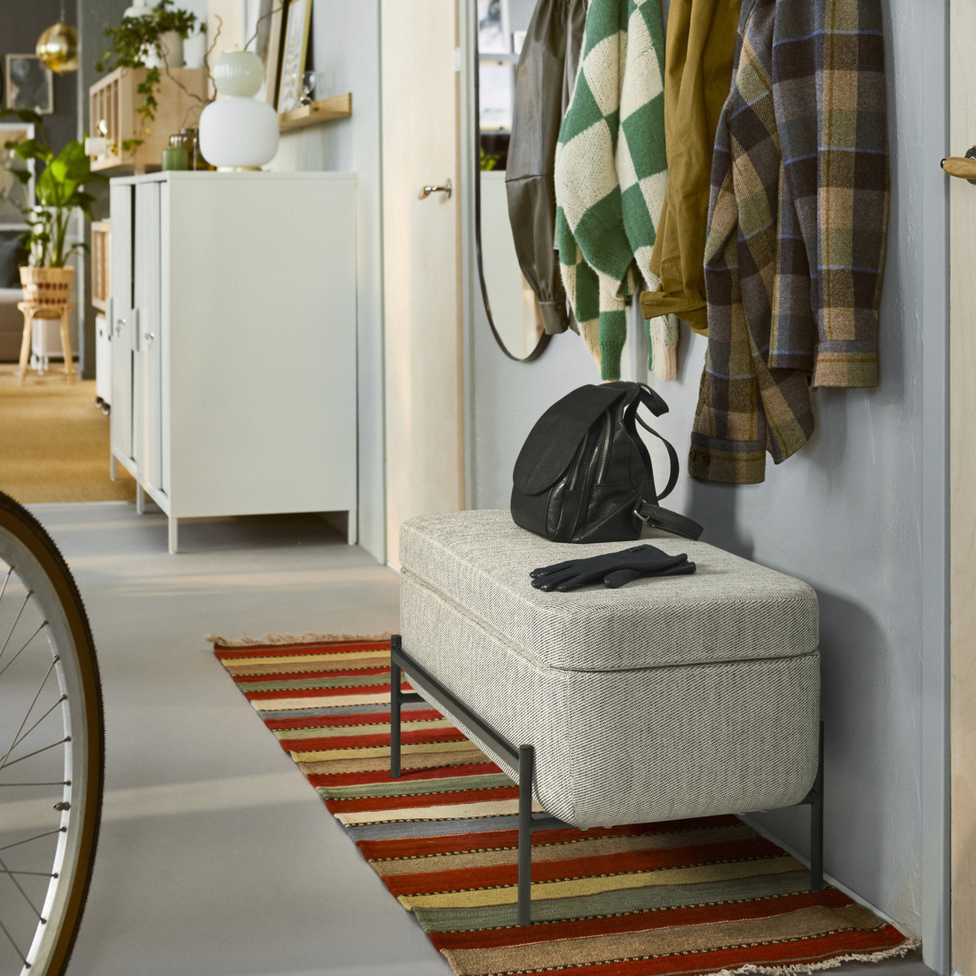VALTORP bench can be used in several places in your home – in the hallway, by the bed or at the kitchen table. So long that it seats two, and it even has a large storage space under the soft seat.