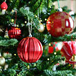 The VINTERFINT collection has Christmas tree decorations for many tastes. This big, classic red bauble with stripes is just as nice on its own in the window or on a door as with other baubles in the tree.