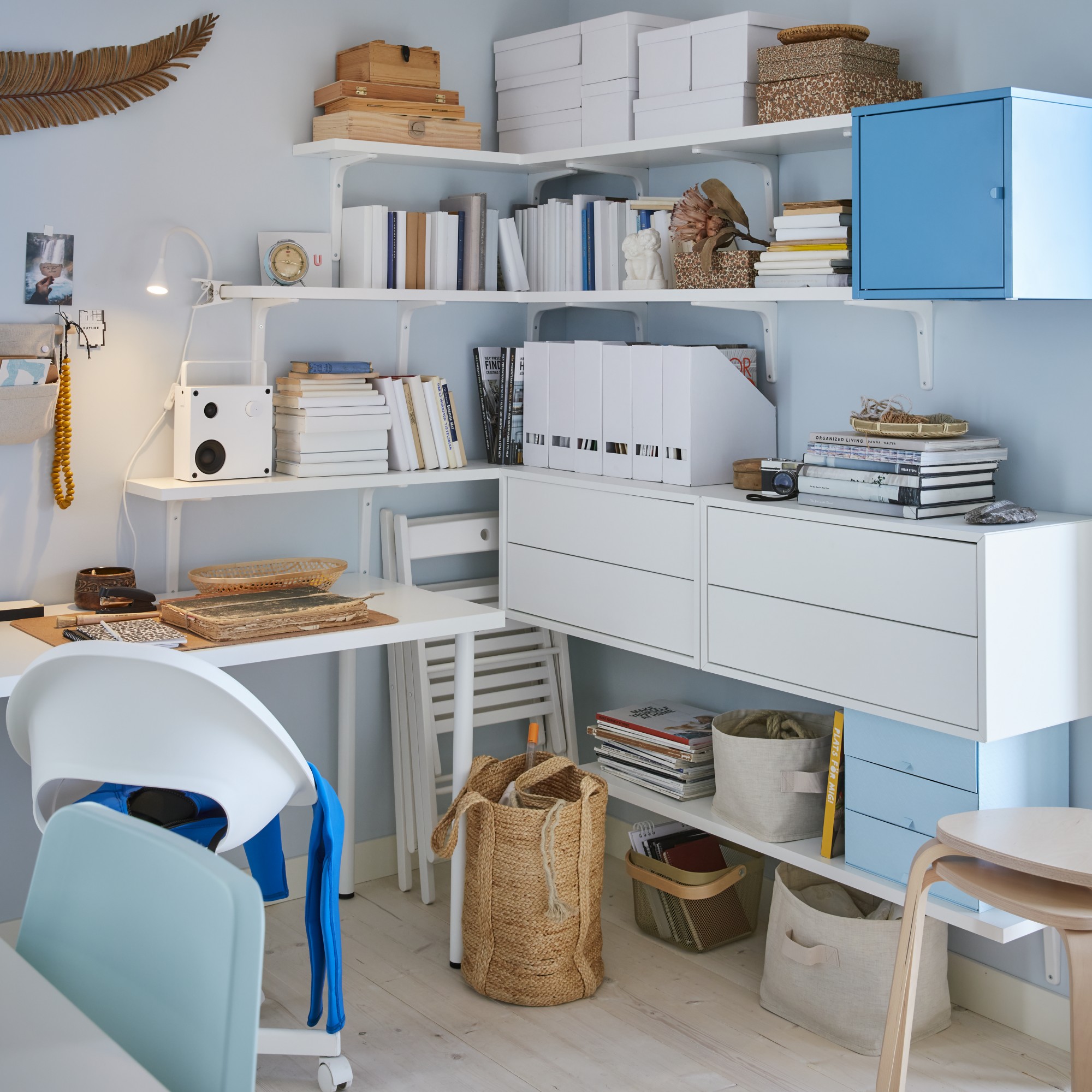 Crea una solución única combinando libremente armarios de distintas medidas, con o sin puertas y cajones.