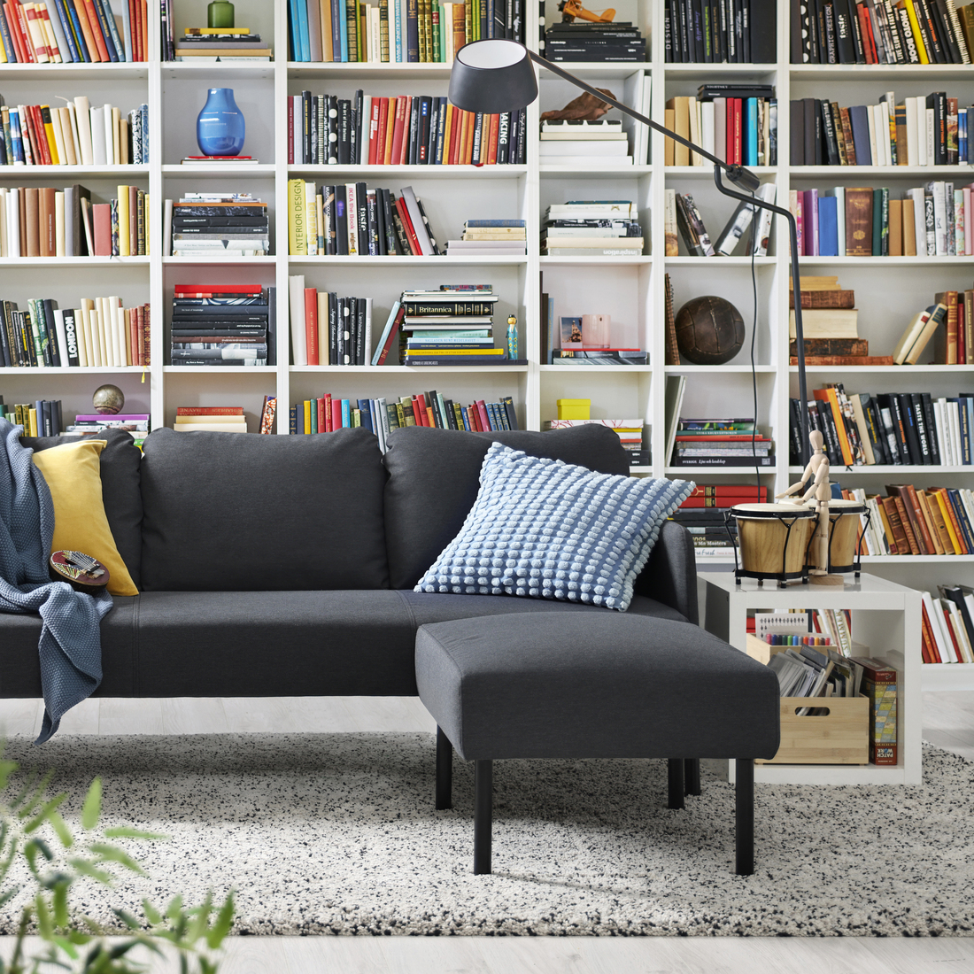 GLOSTAD sofá 3 plazas con chaiselongue, Knisa gris oscuro