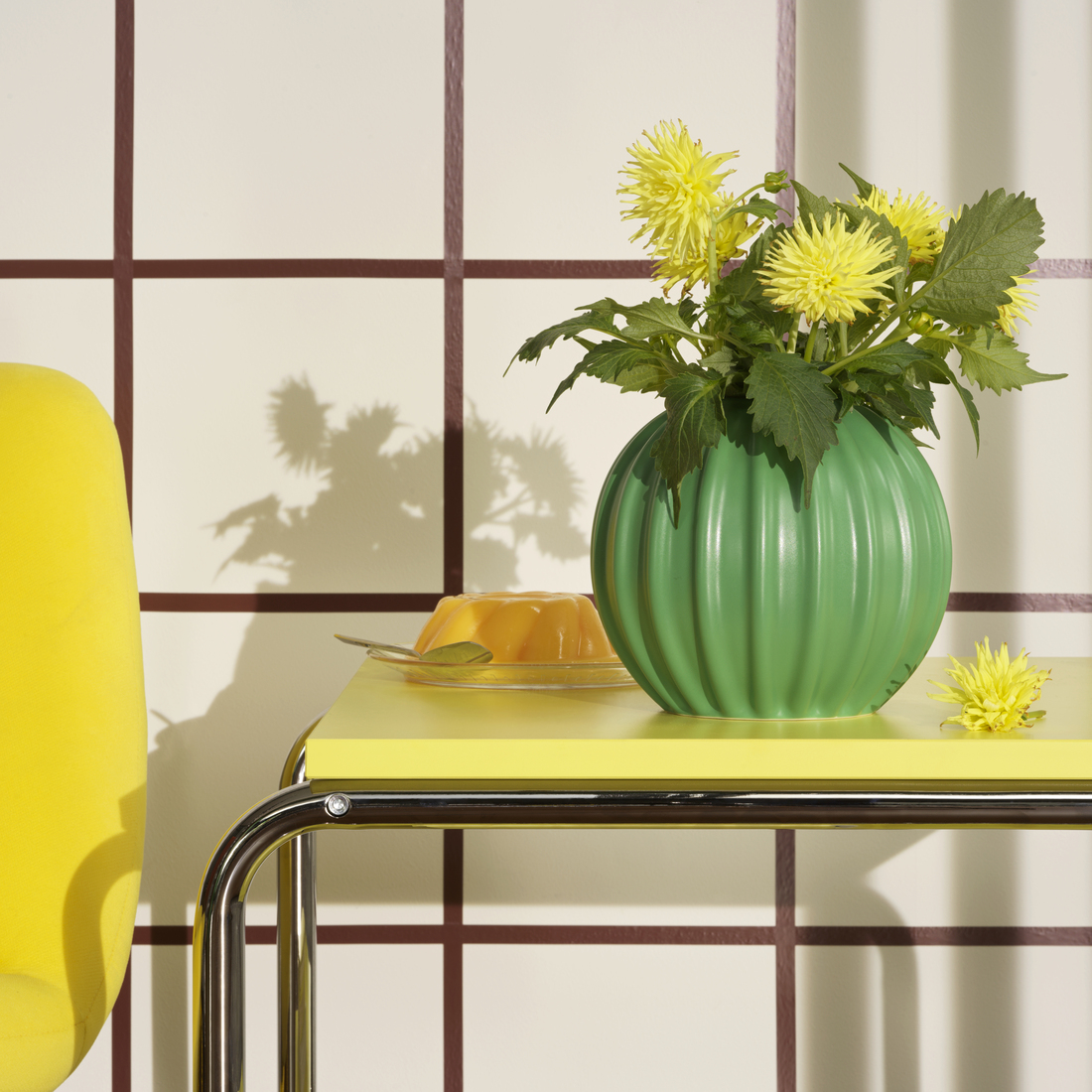 Para el relanzamiento, hemos aprovechado la oportunidad de actualizar el material de cerámica con sílex a cerámica vidriada. También hemos cambiado la abertura del jarrón para que tenga forma anular y hemos renovado los colores.