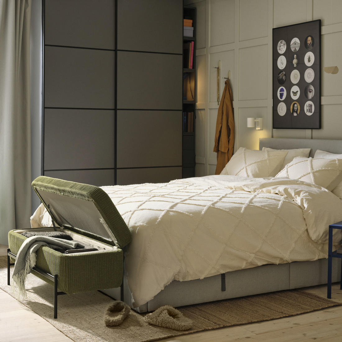 Si quieres tener tus cosas organizadas en el amplio espacio de almacenaje, puedes usar cajas de las series SKUBB y STUK, que se venden aparte.