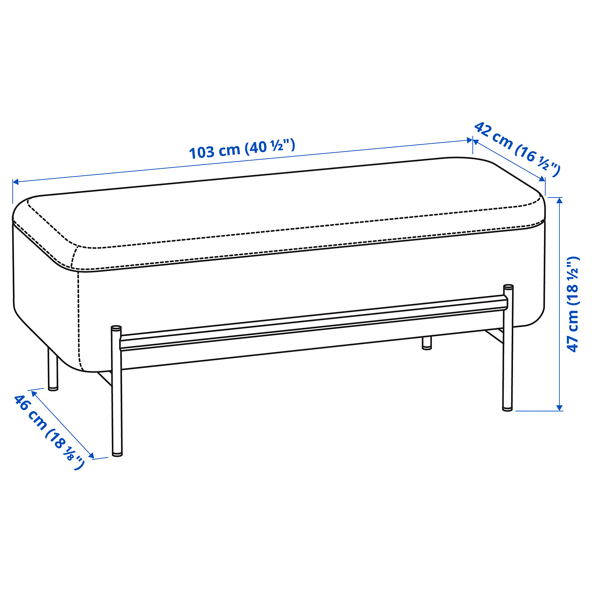 El banco VALTORP se puede usar en diferentes sitios de tu hogar: en el recibidor, junto a la cama o en la mesa de la cocina. Caben dos personas y cuenta con un amplio espacio de almacenaje bajo el asiento.