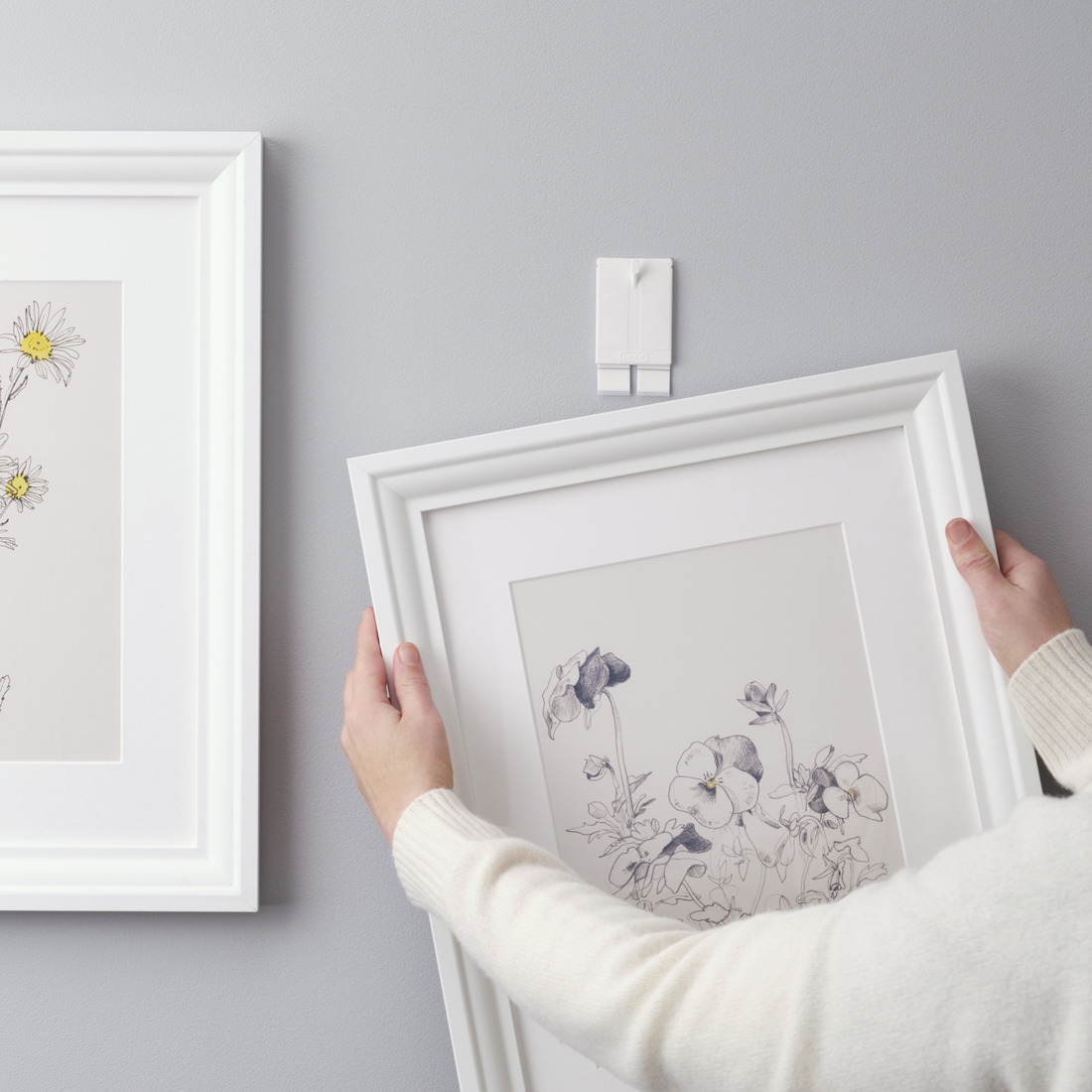 With ALFTA self-adhesive hook you can easily hang lightweight frames without nails or screws and quickly decorate your walls with pictures.