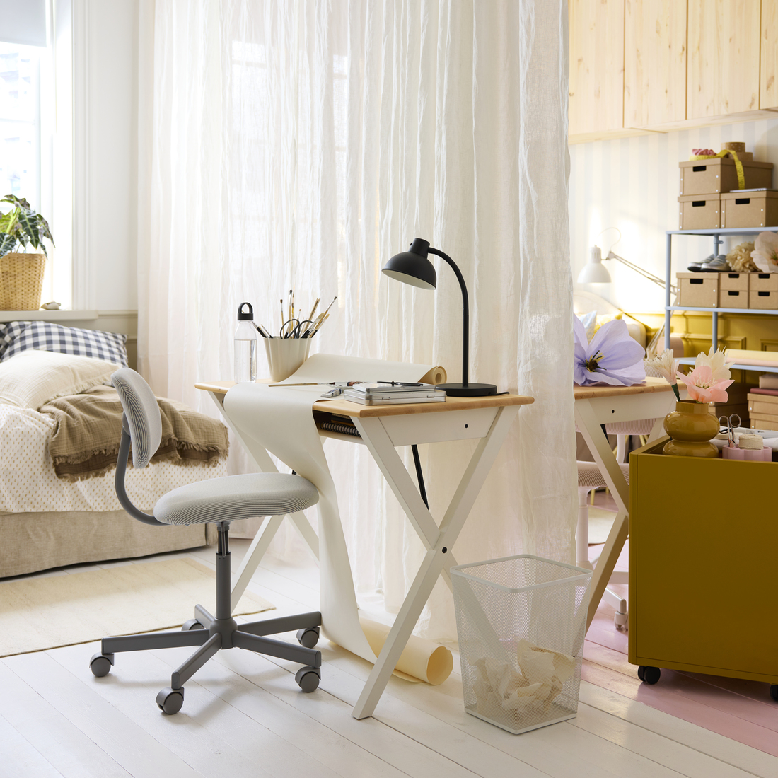 In a small home, a teenage bedroom is more than just a place to sleep: it’s where you figure out who you are. In this example, we’ll help your kids do that, side by side. Whether they’re siblings or twins.