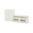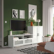 Mueble y mueble de TV blanco BRIMNES, acabado brillante, estanterías ajustables, puertas de cristal, diseño elegante.