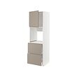 METOD / MAXIMERA high cabinet for oven with door / 2 fronts / 2 high drawers, white / Upplöv matt dark beige