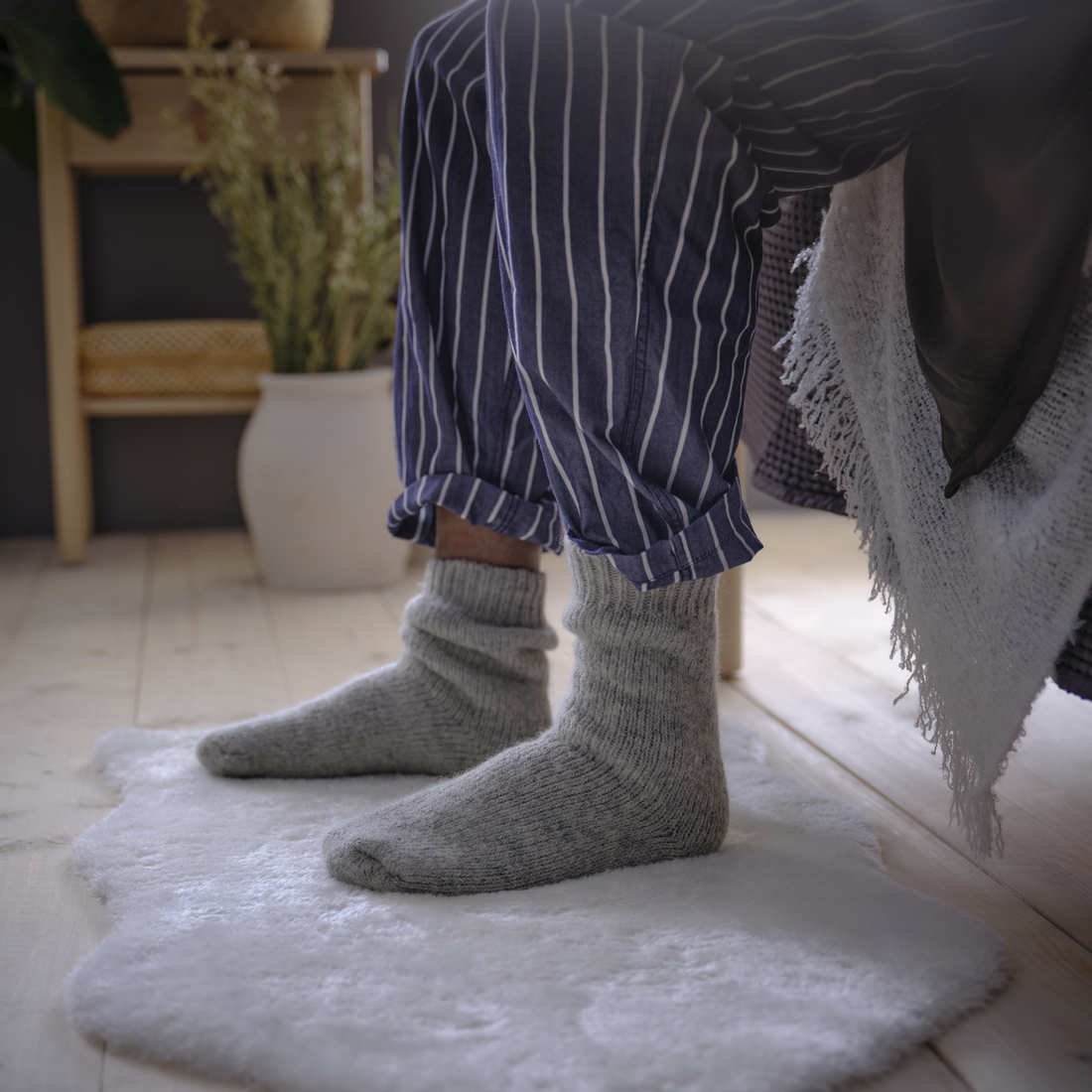 Super soft, warm and cozy whether you have it as a floor piece, drape it over your armchair or want to add comfort to your bench. It looks and feels like a sheepskin but it’s made from recycled pet bottles!