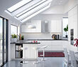 Modernos armarios de cocina blancos con tiradores integrados minimalistas.