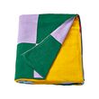 Manta GREJSIMOJS: colorido diseño geométrico, doblado con cuadrados verdes, amarillos y morados.