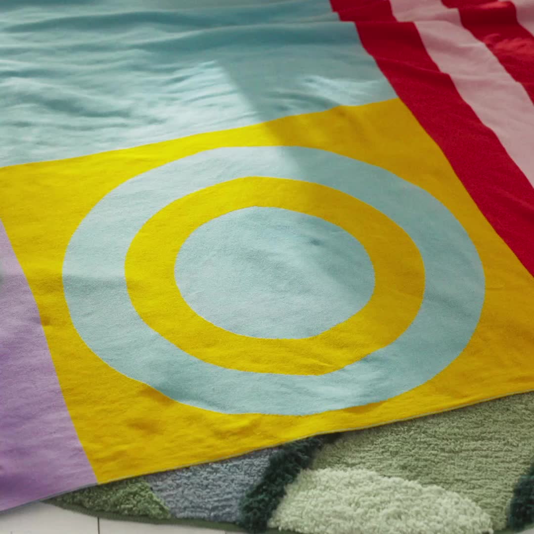 En un momento, es una manta acogedora y colorida en la que acurrucarse, y al siguiente, una divertida alfombrilla para apuntar al blanco, jugar al tres en raya o jugar con los coches. Confeccionada en suave algodón orgánico con certificación GOTS.