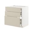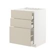 METOD / MAXIMERA armario bajo placa 3cajones3frentes, blanco / Havstorp beige