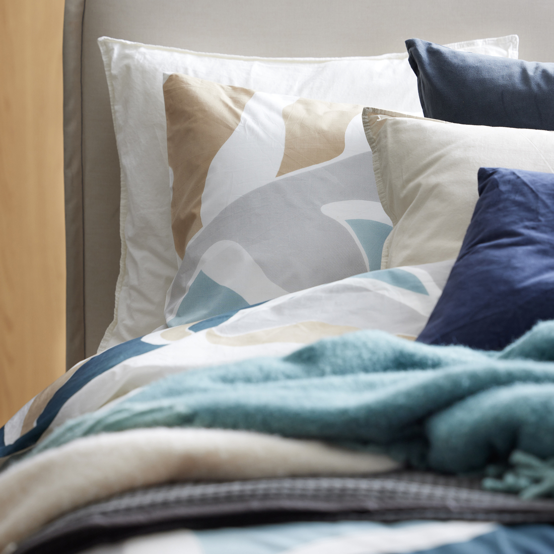 El denso tejido de percal destaca por su durabilidad y resistencia a las bolitas. Su superficie mate y su tacto suave y fresco lo convierten en una opción perfecta para el dormitorio.