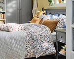 Las soluciones de almacenaje y organización para el dormitorio que encontrarás en IKEA están diseñadas para ayudarte a descansar. Porque, cuando tienes tu ropa ordenada y a mano, tus zapatos a la vista y espacio bajo la cama para guardar los edredones, tu dormitorio parece más grande y descansar bien es mucho más fácil.