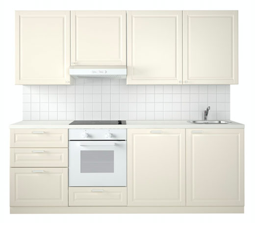 BODBYN, el poder de lo clásico. Los paneles biselados de la serie BODBYN combinados con puertas de cristal proporcionan un aire clásico, y su color en tono cremoso aporta calidez a la estancia.
