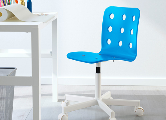 Ergonomic chairs, with flexible, swivel backrest and adjustable height. Chairs designed to perfectly fit your child's body, with a braking mechanism that prevents it from slipping when you get up. Because we care about comfort, but also safety.