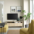 Mueble de tv BESTÅ de madera clara. Dos cajones, lados abiertos, acabado en roble miel. Cajones de cierre suave, salidas de cables.