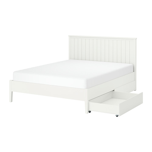 GULLABERG bed frame with 2 storage boxes, white / Lönset
