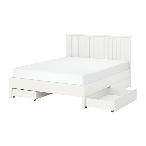 GULLABERG bed frame with 4 storage boxes, white / Lindbåden