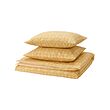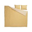 HAMNSENAP duvet cover set has a nostalgic, geometric pattern on one side and yellow stripes on the other – just flip it for an easy refresh! The soft cotton/viscose blend breathes and has a fine sheen.