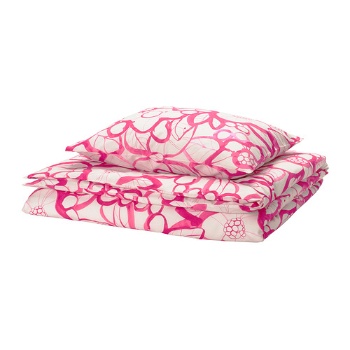 HÄRLIR comforter cover and pillowcase, white bright pink / floral pattern