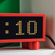 A clock that’s also a decorative interior detail with a bright color, pixelated display and retro feel, while also having many practical extra functions – like showing the temperature and humidity.