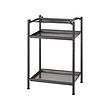 Se trata de una unidad de almacenamiento LAGKAPTEN negra con dos estantes de malla, robustas patas metálicas y pies ajustables para mayor estabilidad.