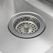 Desagüe de fregadero de acero inoxidable con colador, superficie lisa y pulida.