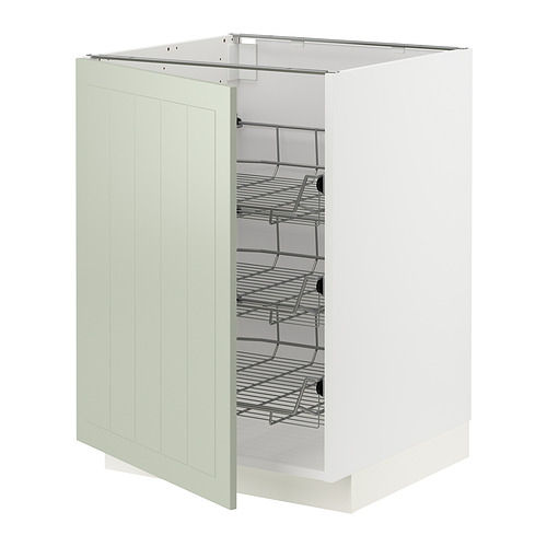 METOD base cabinet with wire baskets, white / Stensund light green