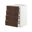 Un mueble de cocina METOD blanco con cuatro cajones de madera marrón oscuro. La unidad es moderna, elegante y tiene un marco robusto con cajones de funcionamiento suave.