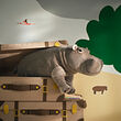 Savannah expeditions require a lot of gear! Pack everything in this trunk with stickers that show it has been on a trip before. Store it under the bed or sofa when the adventure is over for the time being.