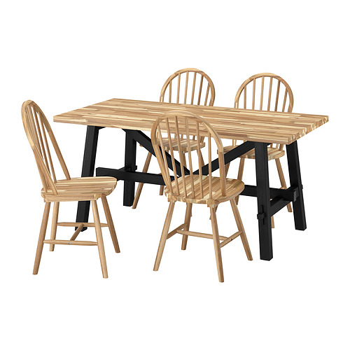 SKOGSTA table and 4 chairs, acacia / black / acacia