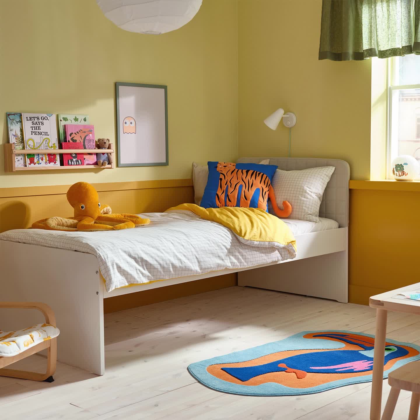 Kids love being on a soft mattress on the floor – this one is great for tumbling, lounging or hanging out with friends. When it’s time to clean up just fold it and tuck it away under SLÄKT bed.