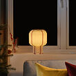 The pleated synthetic paper with thin red lines gives STRÅLA table lamp a modern and decorative look. The lighting effect is cozy and pleasant, and the material is very easy to keep clean.
