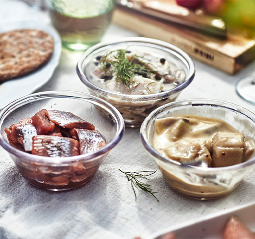 Nuestros arenques con certificado MSC combinan calidad y sostenibilidad en tres sabores clásicos: marinado a la mostaza, al eneldo y natural.