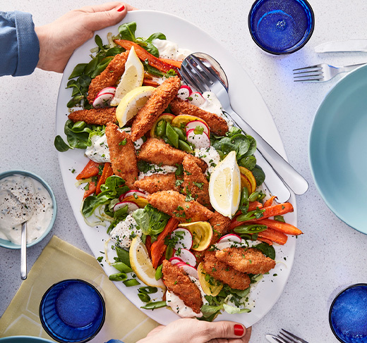 Nuestros bocaditos empanados a base de trigo se convertirán en los héroes de tus comidas diarias: fáciles de preparar y con un sabor delicioso.
