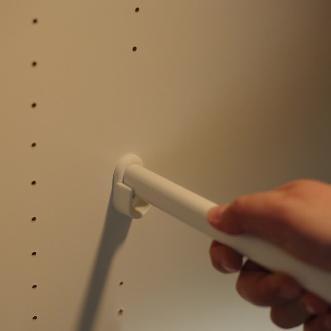 Las estructuras LASTARE tienen muchos orificios pretaladrados para que montes los organizadores interiores y barras de ropa ALTARLIDEN a diversas alturas y aproveches al máximo el espacio disponible.