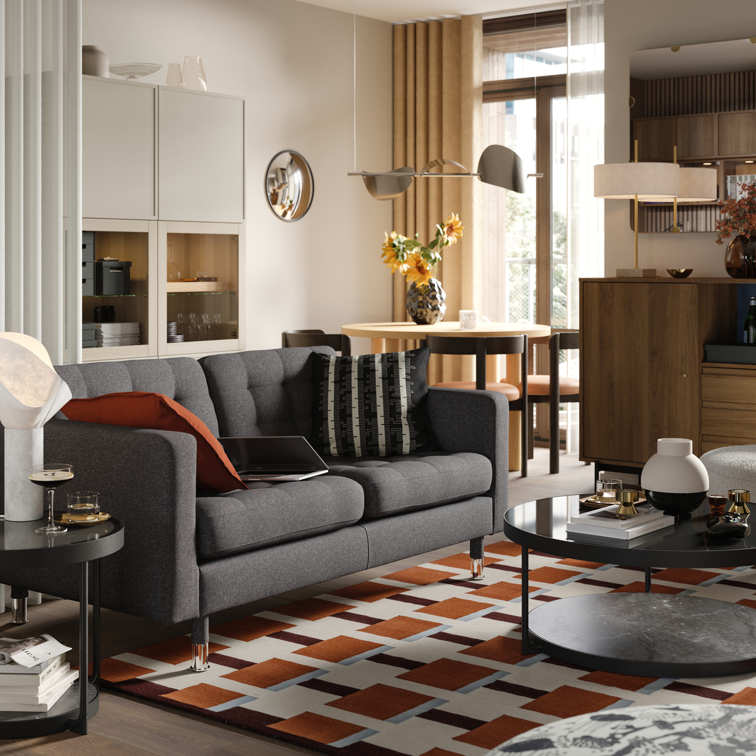 LANDSKRONA sofá 2 plazas, Gunnared gris oscuro / metal