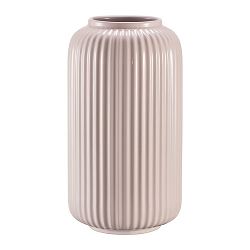 Un jarrón de cerámica alto, de color rosa claro, acanalado llamado STILREN, utilizado para flores.